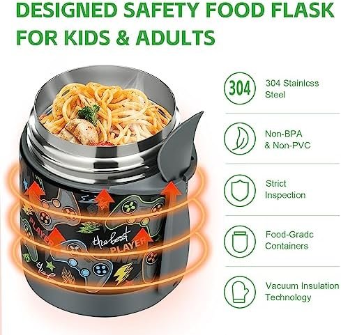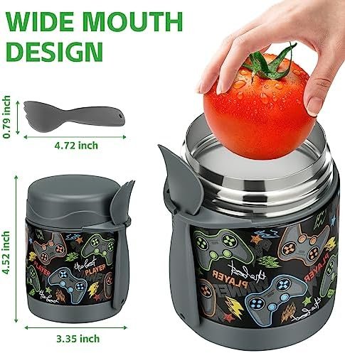 Cute Colorful Design and Perfect Size: This lunch thermo cup have many patterns, which are very suitable for children, It is small enough to put it in a lunch box or the school bag. The jar comes in a 10 oz capacity, perfect for the appetites of little ones, kindergarten, kids boys and girls and baby.