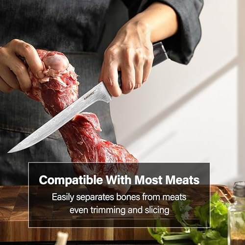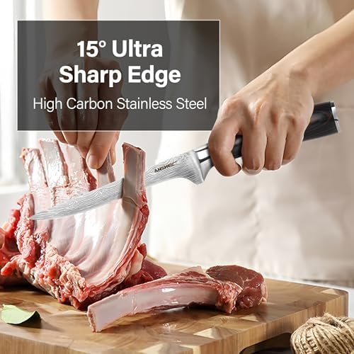 Sharp Edges: The blade of fish knife has been honed with 15-degree cut, demonstrating minimal slicing resistance and exceptional performance. This versatile trimming knife with water ripple is an economical tool suitable for skinning and boning meat with its flexible blade, providing the most comfortable cooking experience.