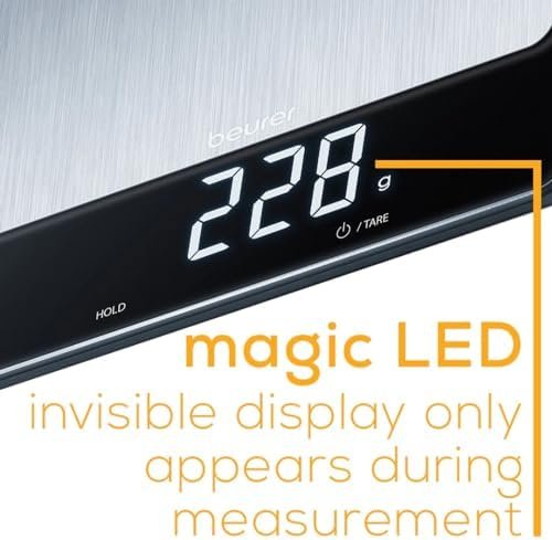 MAGIC DISPLAY: Our scale has an invisible LED display that’s only illumiated when in use, it’s extra large and bright so it’s easy to read – automatic shut-off when done