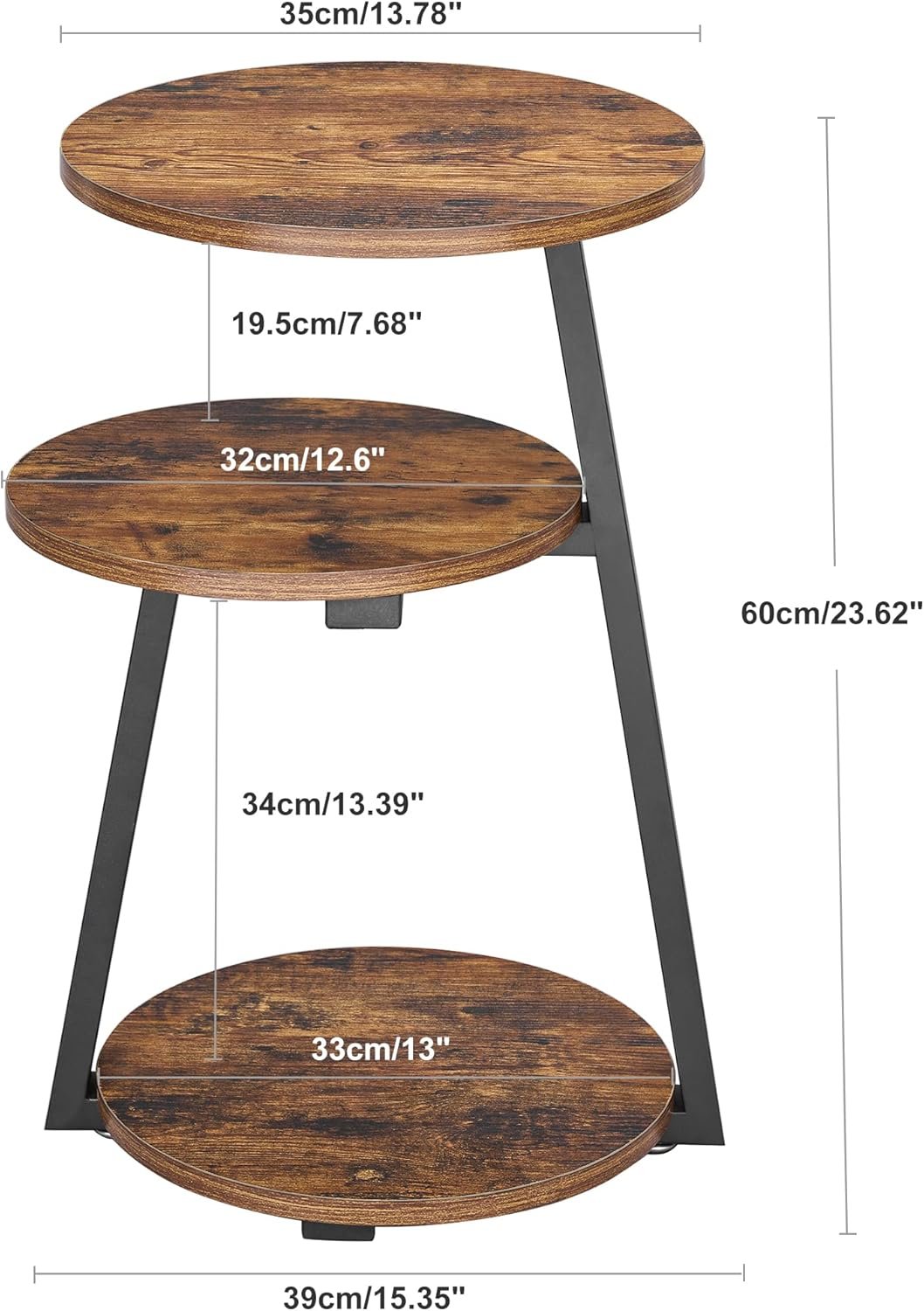 RUSTIC DESIGN: The vintage rustic brown wood texture tabletop and black metal frame creates a warm and comfortable atmosphere. This small end table will match with your furniture in a simple style. Combining the practicality with decoration, the round side table will be an ideal piece of furniture for your home