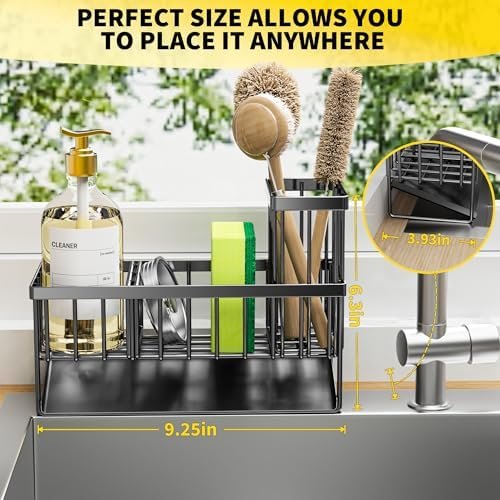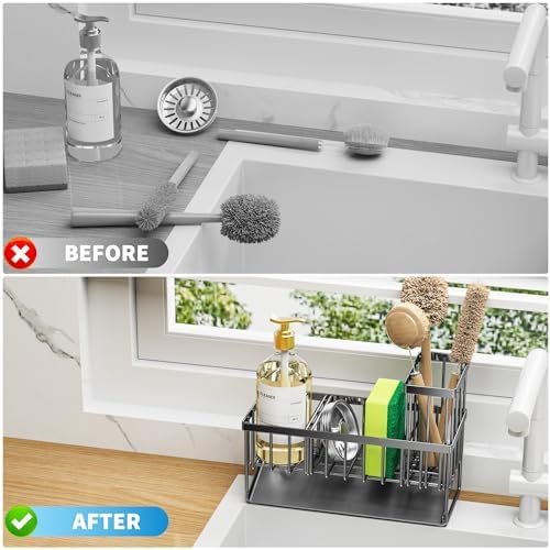 【PREMIUM STURDY MATERIAL】 Cisily kitchen sink organizer is made of premium stainless steel which can effectively prevent rust and deformation. And you can clean it easily by rinsing it under a running tap. Take the clutter out of your countertops.