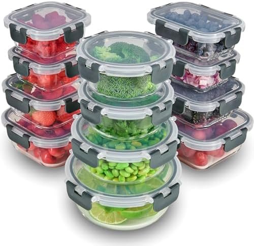 FineDine 24 Piece Glass Storage Containers with Lids – Airtight, Leak Proof