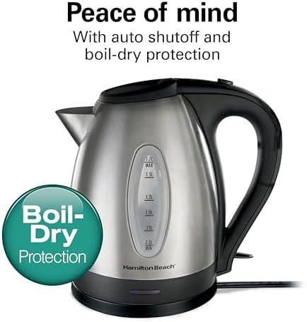 PEACE OF MIND WITH AUTO SHUTOFF: The automatic shutoff feature with boil-dry protection keeps the Hamilton Beach electric kettle from scorching if the water level gets too low.