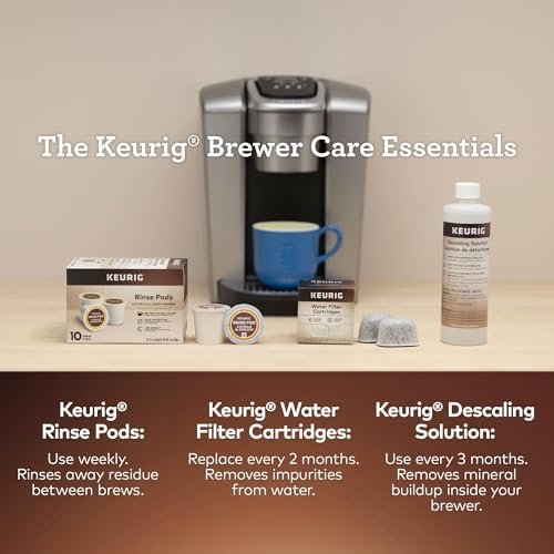 INCLUDES: 4 Keurig Rinse Pods, 1 Descale Solution, and 2 Water Filter Cartridge Refills