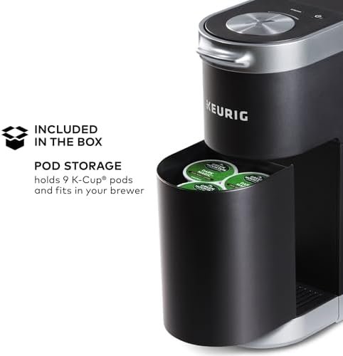 WHAT’S IN THE BOX: Keurig K-Mini Plus single serve coffee maker, pod storage unit that fits in your brewer and can hold up to 9 K-Cup pods.Filter type:Reusable