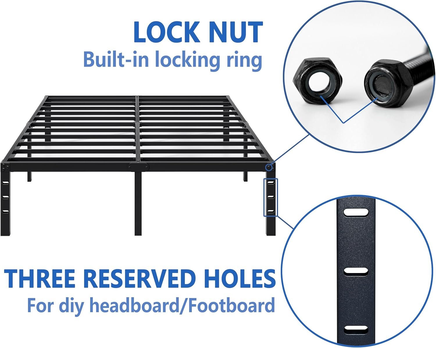 STRONG STABILITY: This metal bed frame is supported by upgraded metal rods and metal legs, which stand the test of time. Our bed frames are made of heavy duty reinforced metal rods, reinforced with thicker material to make them more stable and load bearing. You can rest assured to spend every night!