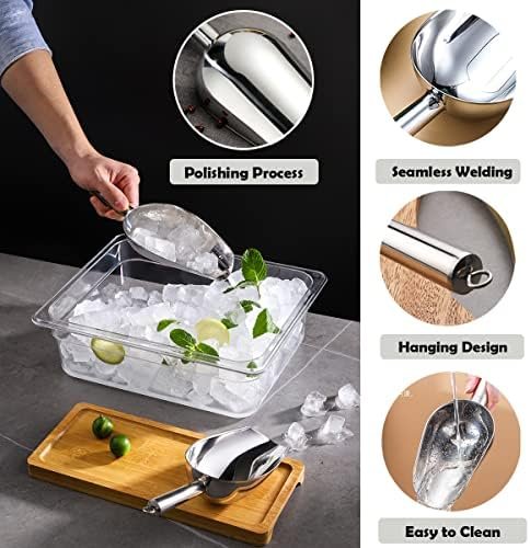 Premium Material: Our ice scoop is constructed with food grade high-quality stainless steel material. Compared to plastic ice scooper, it is more sturdy, corrosion resistance, safe and rust-proof.