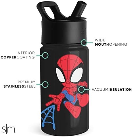 Simple Modern Spiderman Kids Water Bottle with Straw Lid | Marvel Insulated