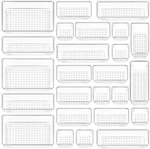 ✔Combination of 4 Different Sizes — One set includes 25pcs storage bins in 4 different sizes, which help you customize combinations to store items and organize drawer in shelf/ closet/ cabinet/ dresser . Includes: 9 x 6 x 2 inches (3pcs), 9 x 3x 2 inches(6pcs), 6 x 3 x 2 inches(8pcs), 3 x 3 x 2 inches(8cps).